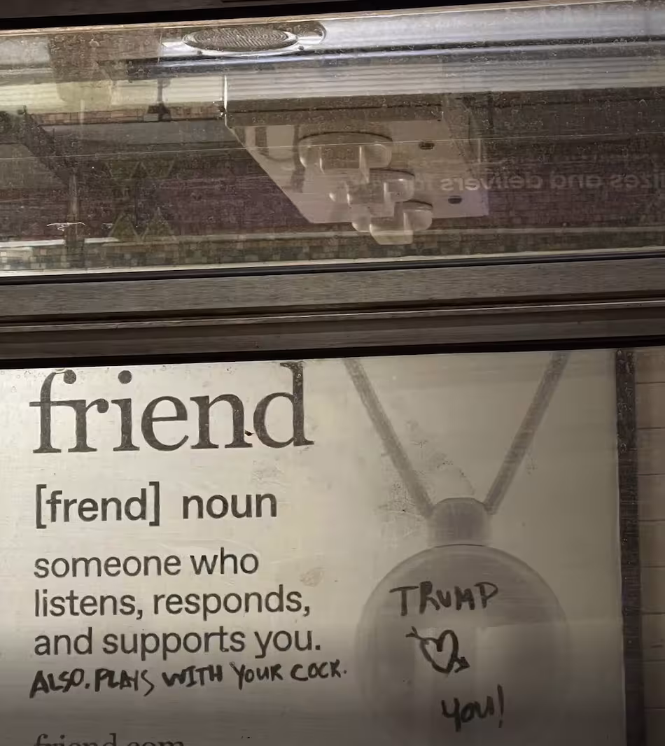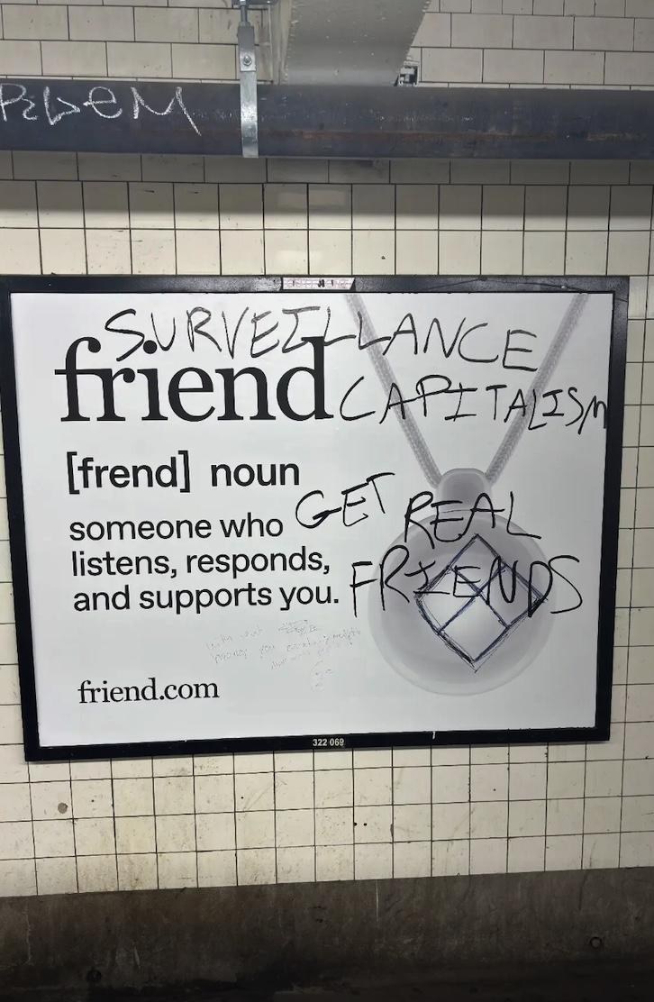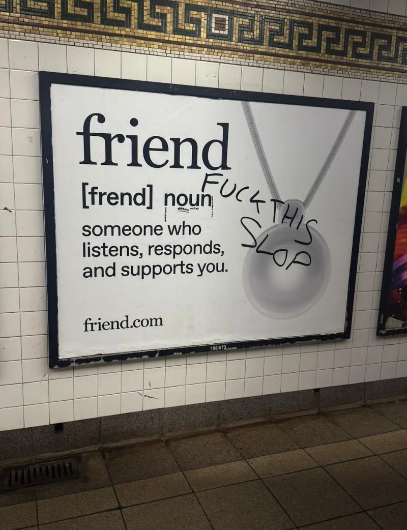 Una prueba de esta controversia estaba en acciones como una campaña de vallas publicitarias en el metro neoyorquino que fueron rápidamente vandalizadas. “Me veré la serie entera contigo”, “Nunca dejaré los platos sucios en el fregadero”, “Nunca me saltaré los planes para cenar”, te dice Friend. “XXX”, “XXX”, “XXX”, son las respuestas grafiteadas por algunos viajeros del metro.