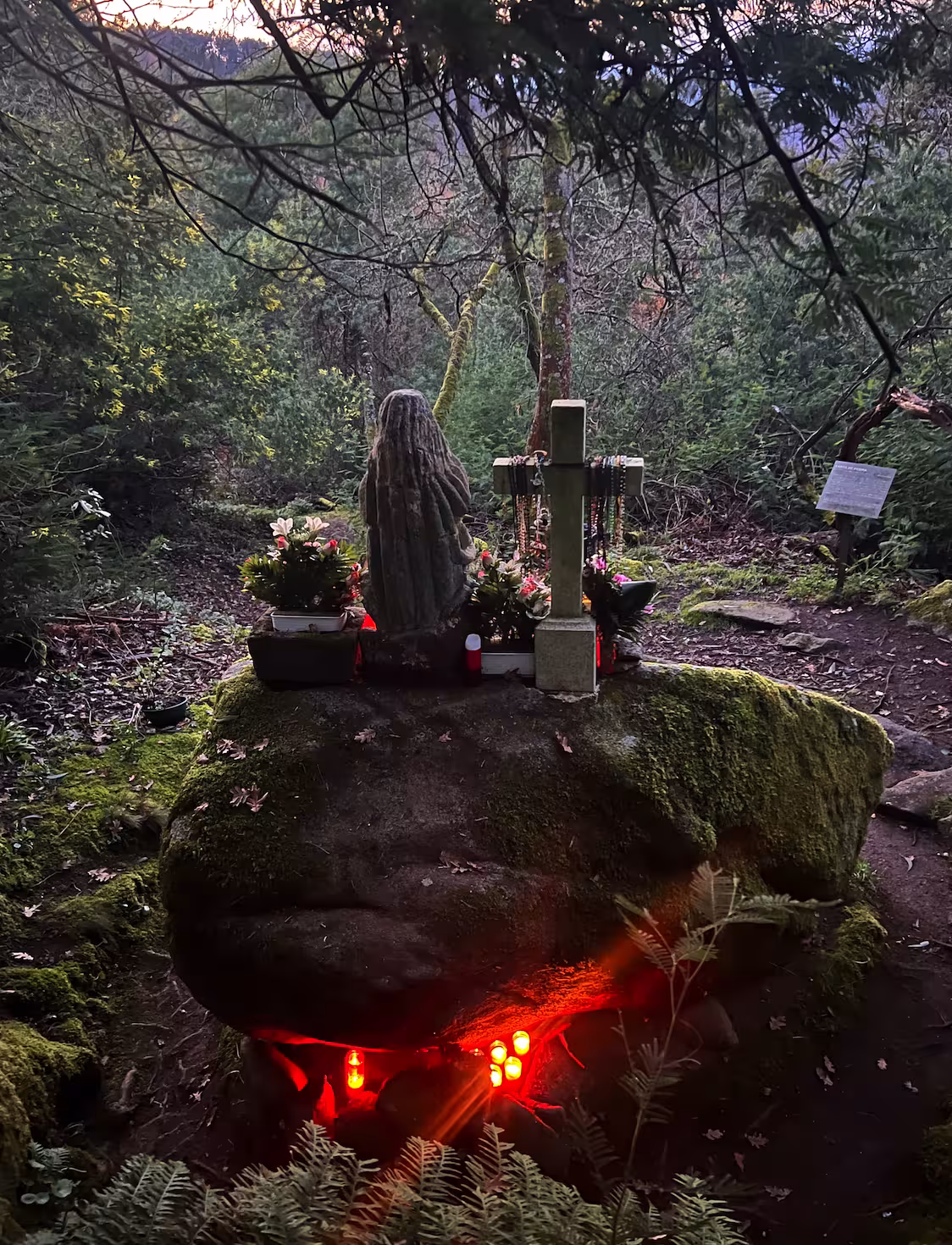 Vivo en un valle sincrético. Cada roca, cada árbol, cada fuente, están impregnados de una vieja leyenda que resuena en los charcos y en la hierba, de tan pronunciada y adorada. Todo está ligado a ella, como si este fuera un lugar sagrado ancestral que sigue latiendo desde muy abajo y sobre el que se hubiera superpuesto una capa de fe profunda e irracional, que no cuestiona los mitos, sino que adora desde las entrañas. En este lugar te sientes bien. Y en cada uno de sus nodos, la ermita, la piedra sagrada, la cripta de la santa, te sientes extrañamente bien. Aunque traigas el corazón agitado de los mil asuntos agitantes de la vida de superficie, esta vida subterránea sale al reencuentro como un consuelo silencioso. Es como si todos los adoradores previos y las antiguas ninfas estuvieran agazapados para confortarte. Fui descubriendo toda esta cosa legendaria en paseos sucesivos por estas carballeiras. Pasear por el bosque se siente parte de una conversación. Es un bosque que cada vez es más bosque, toda vez que las viejas huertas se han ido abandonado como se abandonaban las aldeas y los árboles han seguido su procesión implacable, recobrando el espacio que antes domesticaba el hombre. Si uno lo decide, aquí se consigue escuchar el sonido del mundo de antes del mundo.