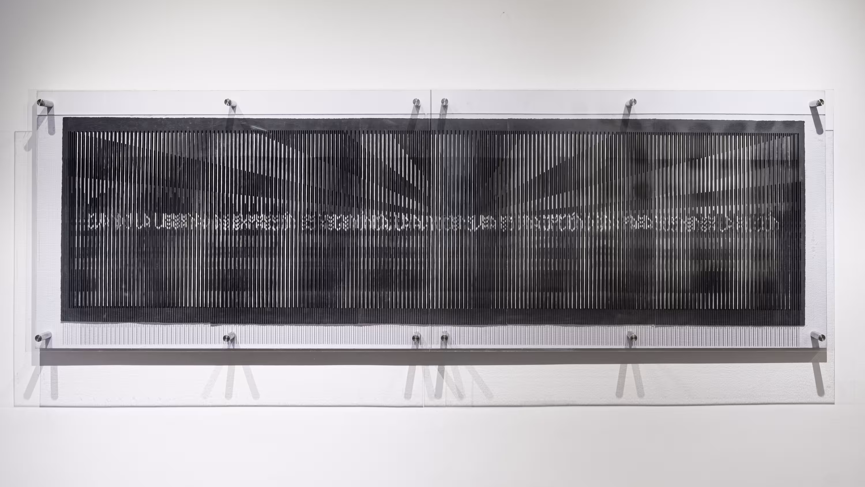 Carbón líquido sobre cartulina, tinta de emulsión fotosensible sobre acrílico, tablero RH y acero